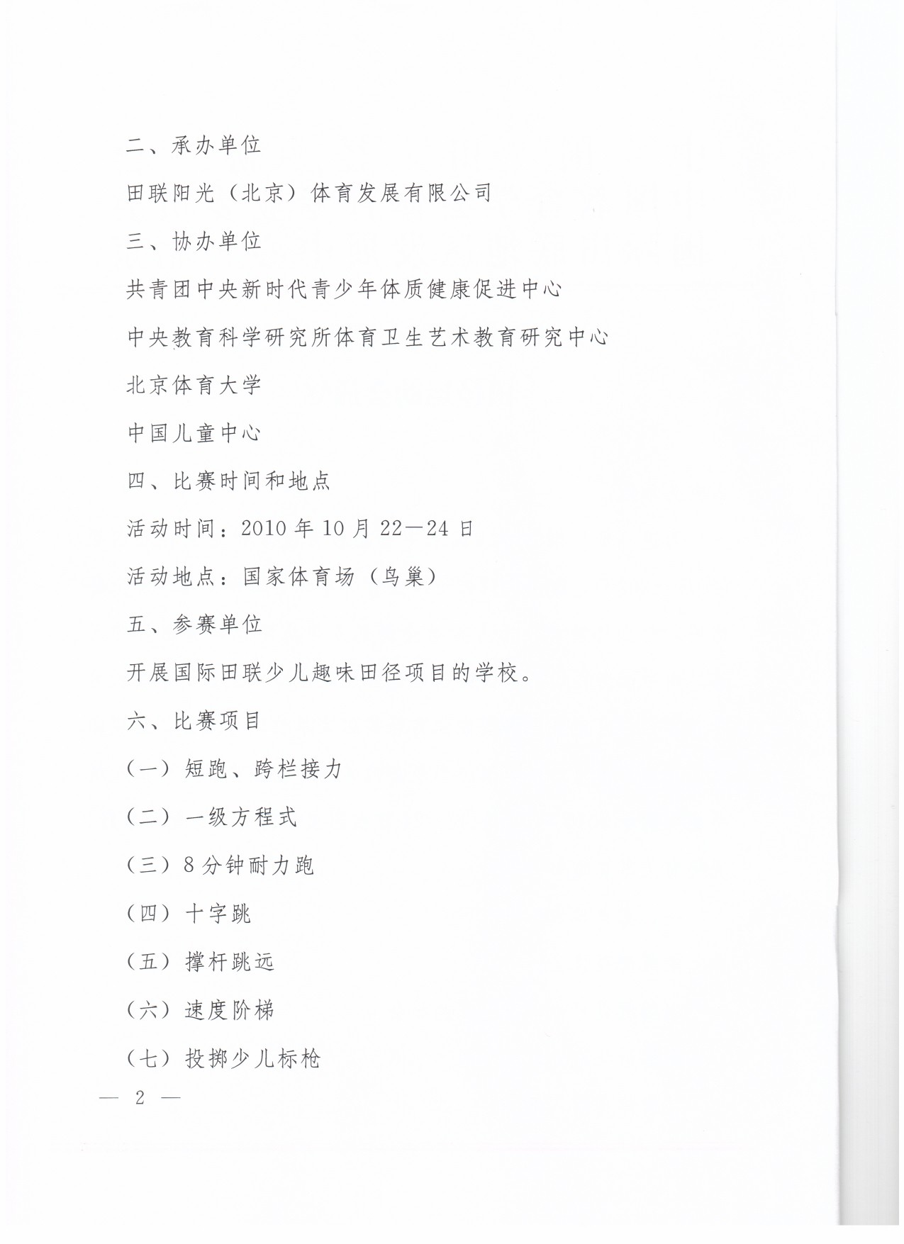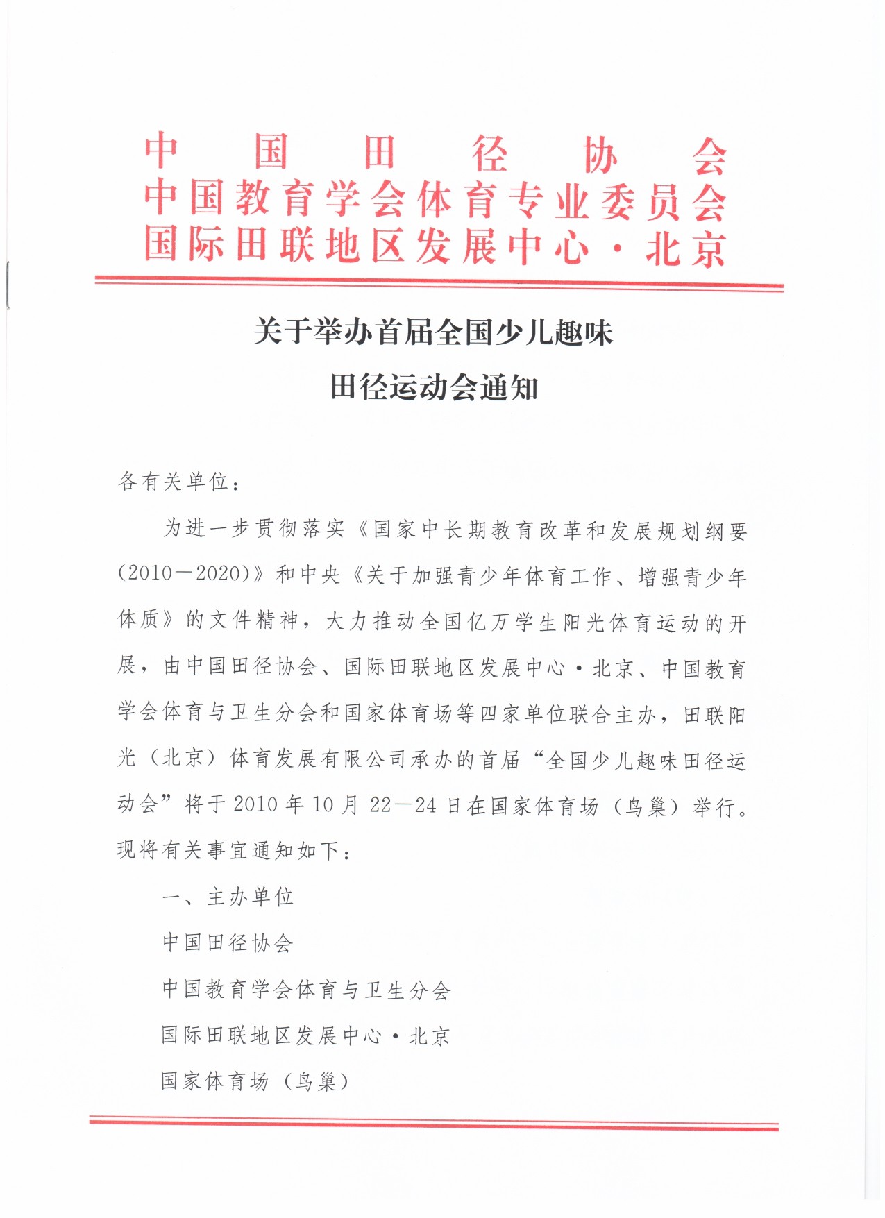 2011年鸟巢全国少儿趣味田径运动会通知
