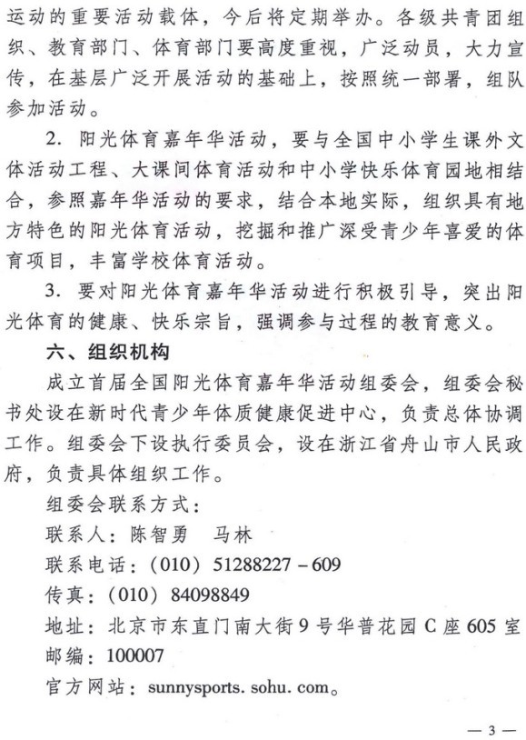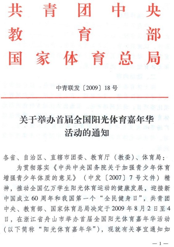 关于举办首届全国阳光体育阳光嘉年华活动的通知