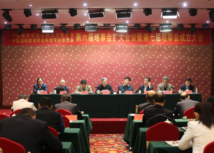 “中国教育学会体育与卫生分会、中国高等教育学会体育专业委员会第六届理事会扩大会议暨第七届理事会成立大会”于2014年10月31日在信阳师范学院召开,来自全国各地的学会理事100余人参加了换届大会。此次会议上对第六届理事会工作进行了总结,同时选举产生出新一届理事会成员。教育部副总督学杨贵仁同志当选为新一届理事会理事长。李鸿江、毛振明、耿培新、马军担任常务副理事长,马瑞升、王家红、姚家新、张瑞林、王凯珍、吴健、季浏任副理事长,耿培新担任秘书长,于振峰、王龙龙、殷恒婵、陈雁飞、白荣正、叶辉、马英华任副秘书长。