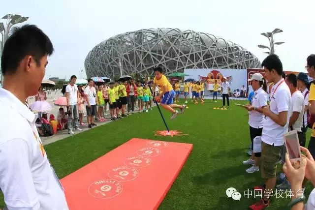 2015年北京国际田联世界锦标赛于8月22日—30日在国家体育场(鸟巢)隆重举行。鸟巢,这个承载着运动健儿梦想的福地,来自世界各地的运动员,在这里拼搏、在这里呐喊、在这里相拥庆祝,在这块福地缔造了一个又一个“神话”,在这里,中国代表队选手苏炳添以9.99秒的成绩进入了100米决赛,国人为之骄傲、为之自豪;大家还沉浸在“飞人”博尔特的速度之中……运动员的拼搏,点燃了观众的热情与激情。此时,在鸟巢旁边的绿茵场,也正在进行着一场激情不减、拼搏不减适合青少年儿童参与的“少儿田径展示比赛”活动。本届活动是由国际田联地区发展中心·北京、田联阳光(北京)体育发展有限公司主办,共有来自全国11个省22所实验学校的300余名学生参与本次活动。