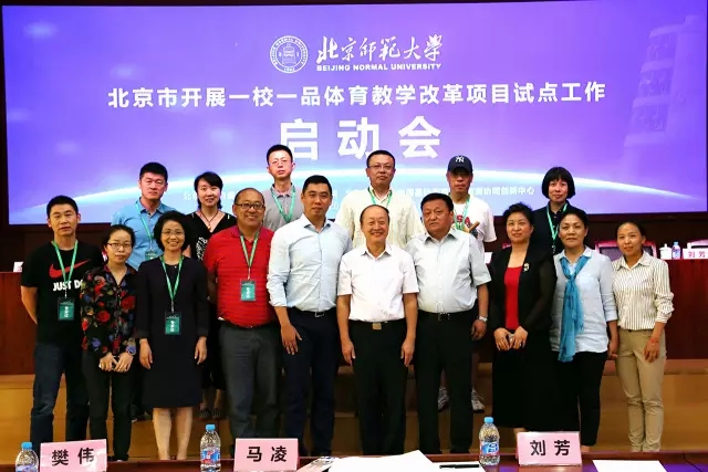 2016年9月14日下午2时,在北京师范大学京师学堂京师厅召开项目启动会,部署相关试点工作事宜。北京市教育委员会体卫艺处干部张志华、北京教科院基教研中心体育教研室主任马凌、北京师范大学中国基础教育质量监测协同创新中心副主任罗良、北京师范大学中国基础教育质量监测协同创新中心体育学科首席专家、全国学校体育联盟(教学改革)主席、项目首席专家毛振明、16区县教委主管领导及中小学教研员、38所试点校校长及体育教师代表、项目专家团队共150余人出席了此次启动会。