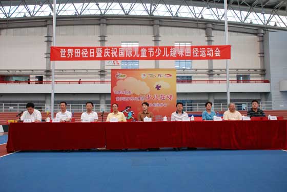 2009年5月30日在北京体育大学国家训练基地综合馆,国家体育总局局长助理晓敏女士;国际田联荣誉副主席楼大鹏先生;国家体育总局田径运动管理中心主任、中国田径协会副主席兼秘书长杜兆才先生;国家体育总局田径运动管理中心副主任、中国田径协会副主席周冰冰女士;中国田径协会青少年部主任黄炜先生;国际田联地区发展中心·北京主任、北京体育大学副校长钟秉枢先生;国际田联地区发展中心·北京副主任孙南先生;中国教育学会体育与卫生分会副秘书长、北京市中小学体育运动协会主席白荣正先生;田联阳光(北京)体育发展有限公司总经理高永