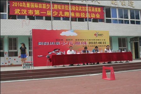 国家中长期教育改革和发展规划纲要(2010-2020年)明确提出,要把促进学生健康成长作为学校一切工作的出发点和落脚点,为贯彻纲要精神,进一步加强青少年体育锻炼意识,增强青少年体质,促进田径运动的普及与发展,6月23日下午,在省教研室的精心组织和协调筹备下,2010年鸟巢国际田联少儿趣味田径比赛(武汉赛区)在武汉市中山路小学成功举办。