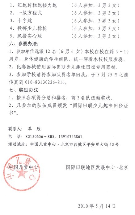 关于组织开展国际田联少儿趣味田径项目的通知
